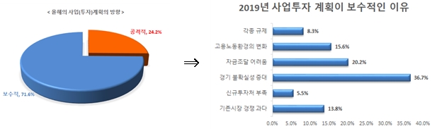 ¡à 2019³â »ç¾÷(ÅõÀÚ)°èȹÀÇ ¹æÇâÀº ¾î¶»°Ô µÇ´ÂÁö¸¦ ¹¯´Â Áú¹®¿¡ ¡°º¸¼öÀû(71.6%)¡±, °ø°ÝÀû(24.2%) À¸·Î ³ªÅ¸³µ´Ù.